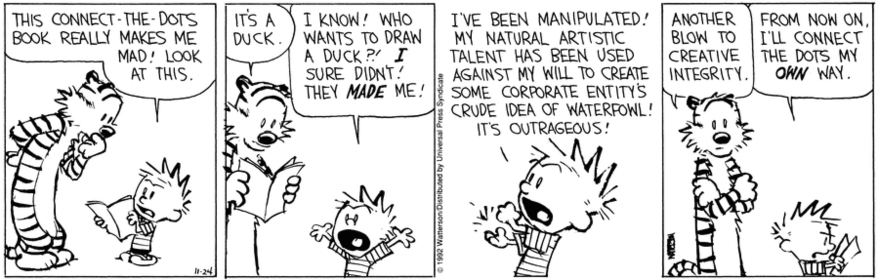 It’s no great revelation that my all-time favorite comic strip is Calvin & Hobbes by Bill Watterson. I’d be willing to bet that a quick poll of U.S.-based Gen-X’ers would show C&H as the favorite for a large percentage of my generation. (note from Scott: I’ll go Family Circus, but I’m not really a comic strip guy)