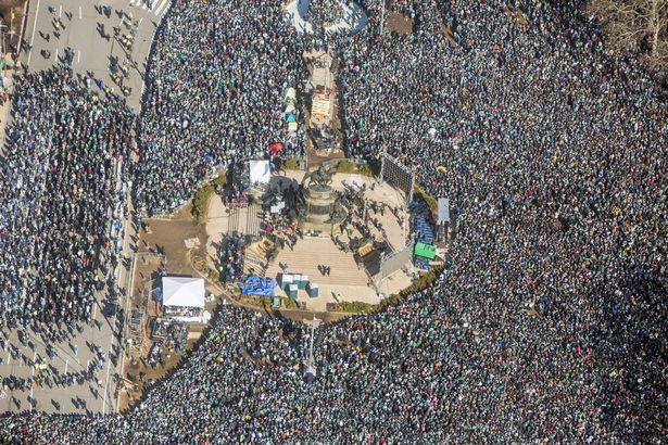 If you squint, you can see me near the upper-right corner. I’m the one wearing green and cheering.